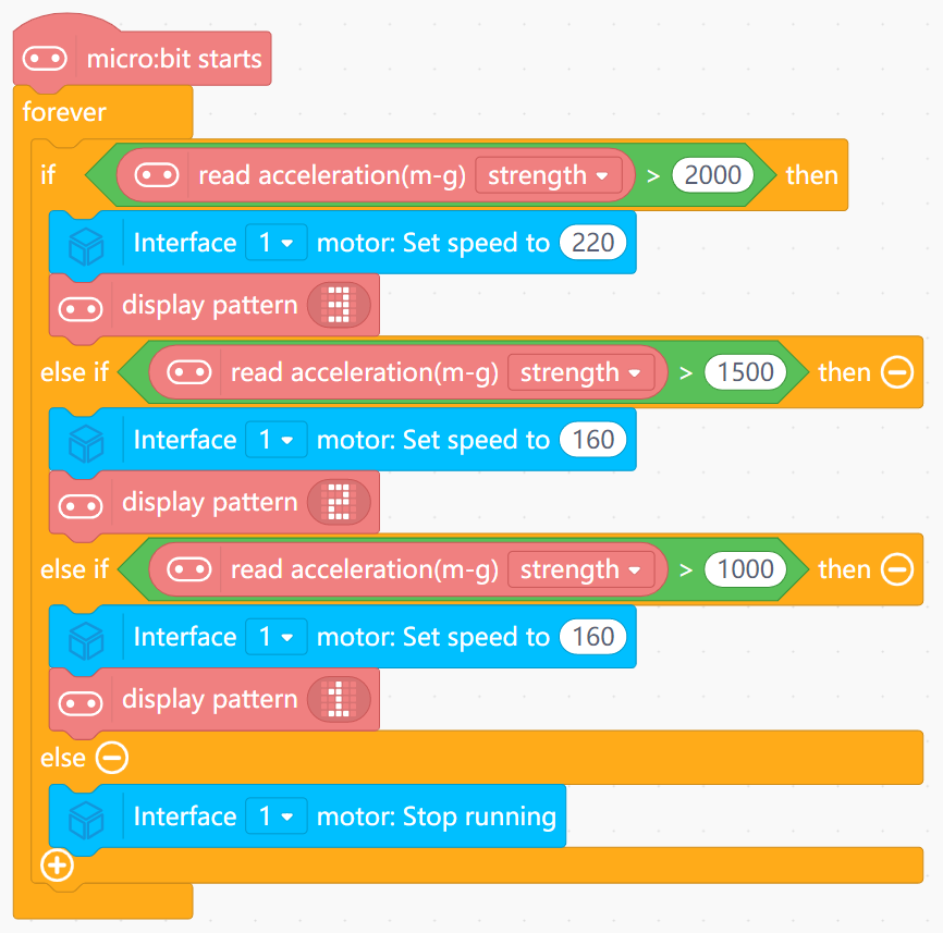 Accel.Accel > 1000, set motor speed based on ranges, e.g.: