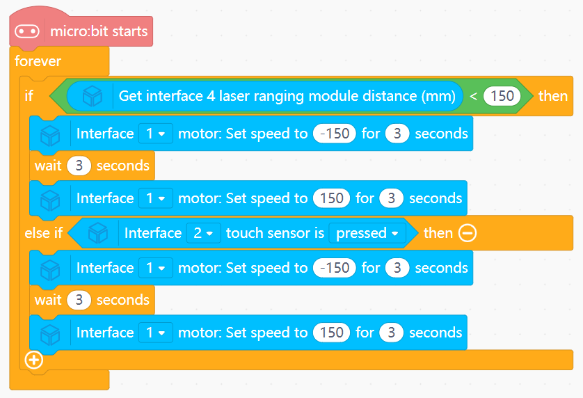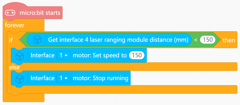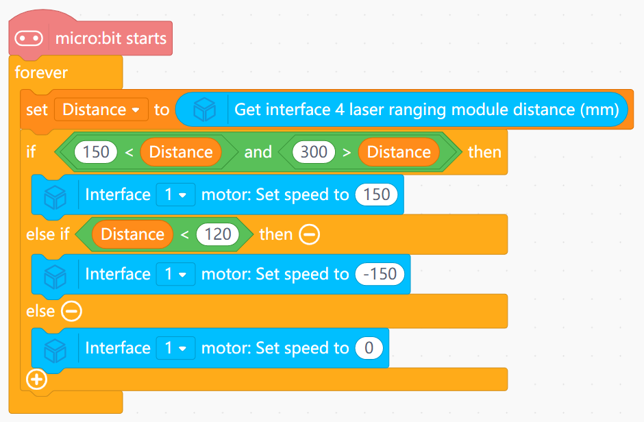 Dist.Dist < 150mm: Run motor forward (Thrust).