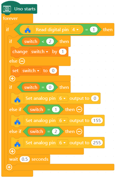 switch.switch < 2, increase switch by 1.switch = 2, set switch to 0