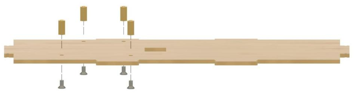 Take wooden plate #5 and screw four M3*6 countersunk screws through the screw holes and into the copper pillars. Pay attention to the orientation shown in the diagram.