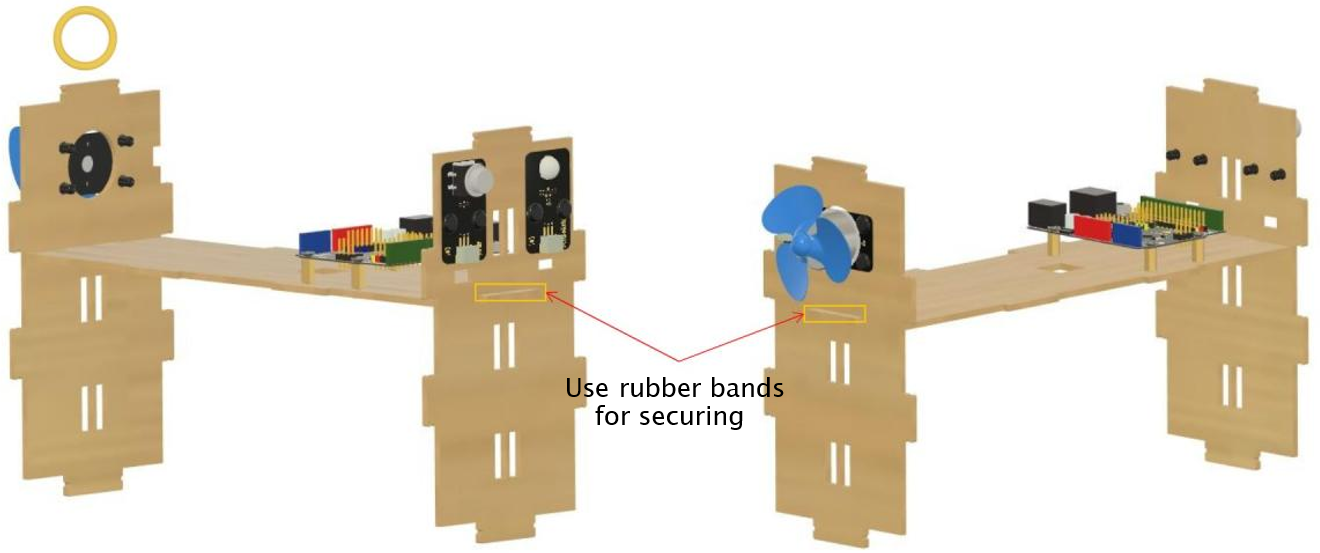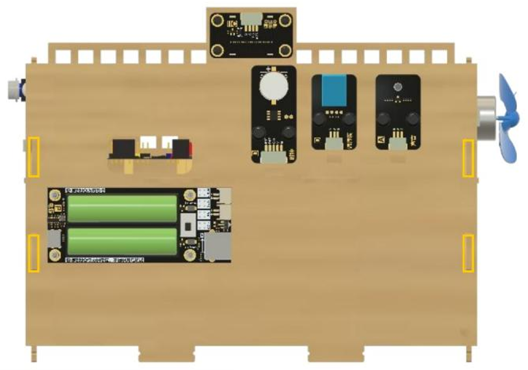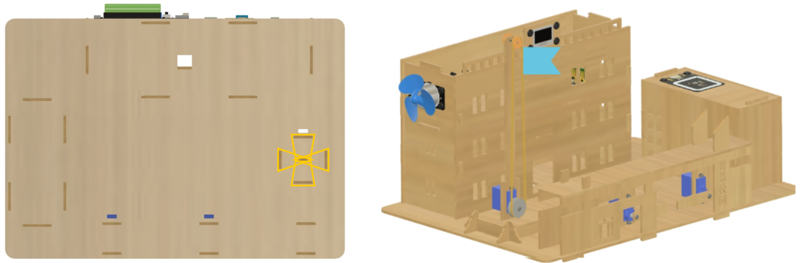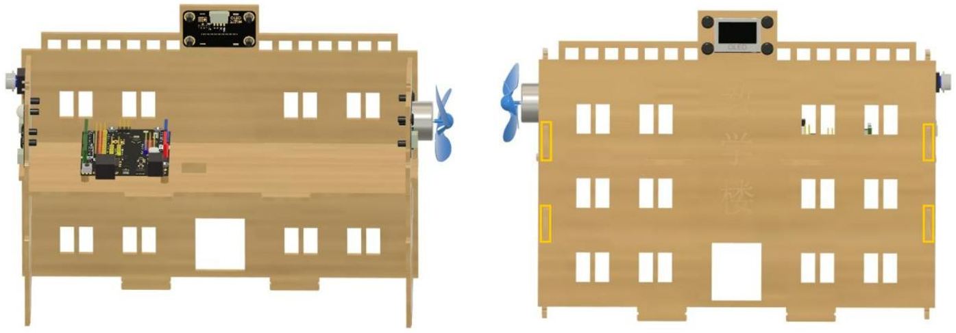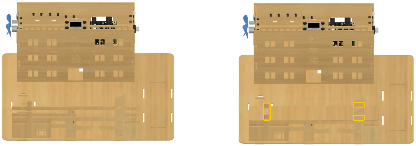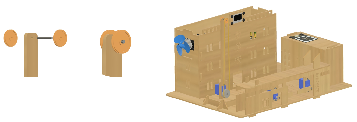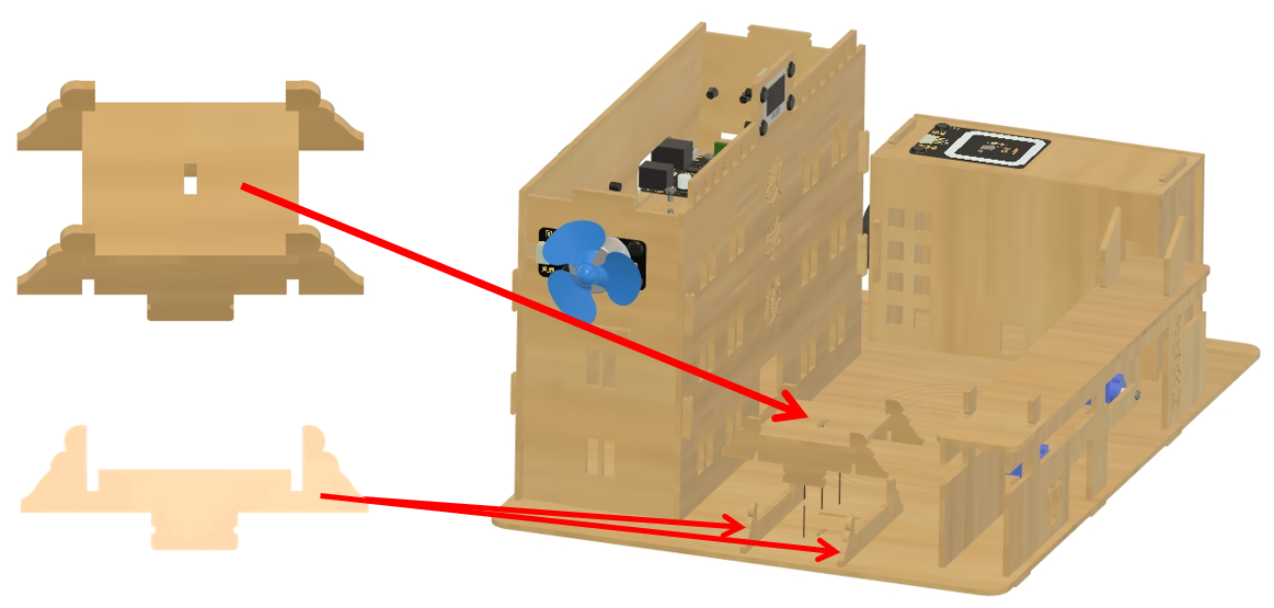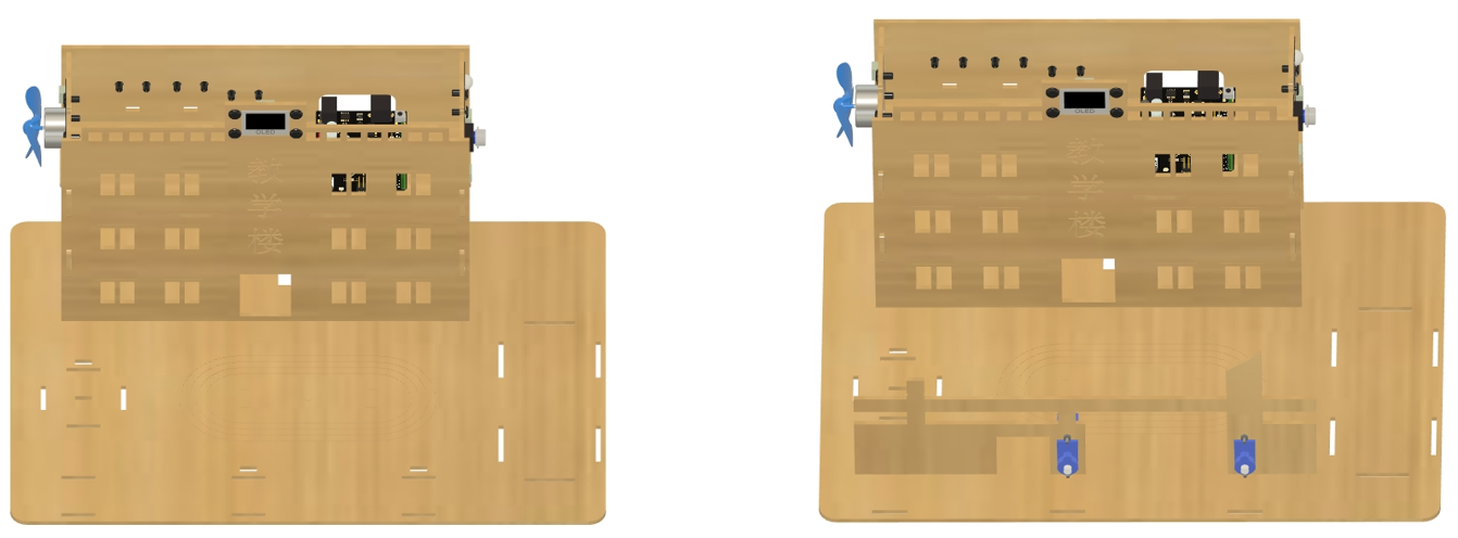 The main structure consists of a number of wooden components and auxiliary devices. Below are the steps on how to properly assemble them into the Smart Campus model: