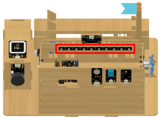 Attach the RGB light strip to the inside of the main building’s front wall.